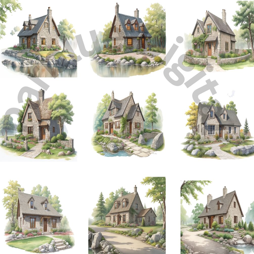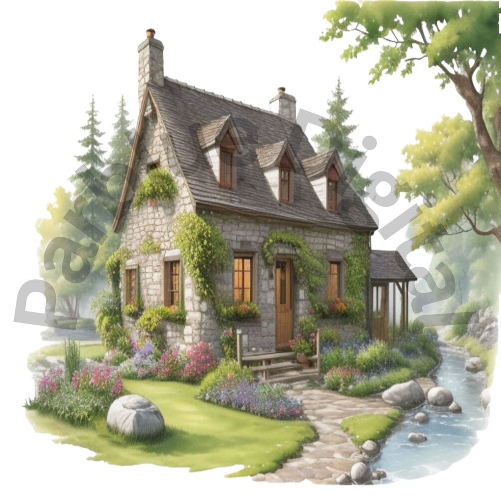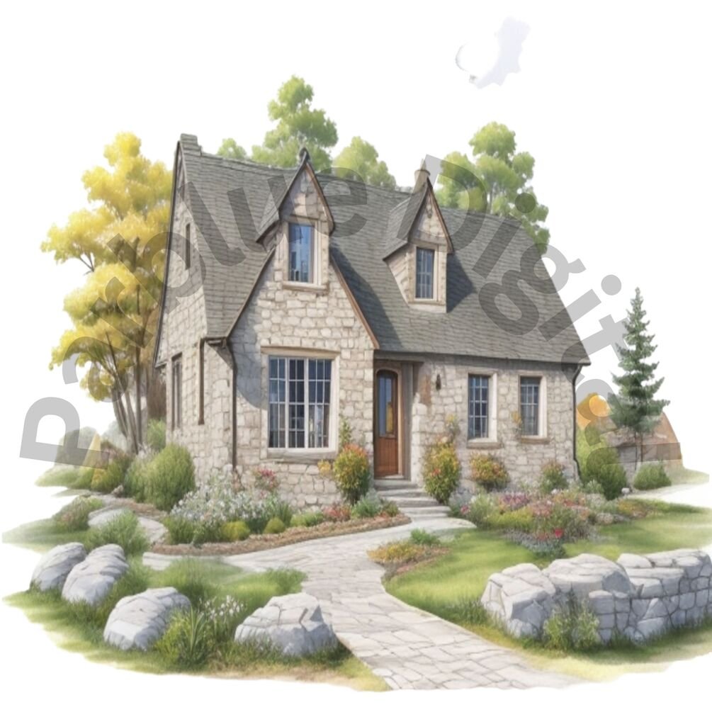 Stone Cottage Clip Art With Transparent Background | Digital Download | Sublimation Projects | Instant Download |#167
